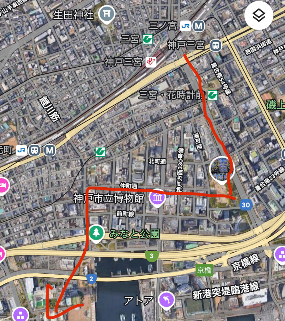 このルートはJR三ノ宮からスタートし、南にまっすぐ下り、今回紹介はしませんでしたが「東遊園地」でゆっくりした後そのまま旧居留地へ向かい、メリケンパークまで簡単な道のりで、多くの観光スポットを巡ることができるので非常におすすめです!また、ショッピングを楽しみたい方は南に下る途中で三ノ宮センター街に入りそのまま西に歩けば元町商店街や南京町に向かうこともできるのでおすすめです!